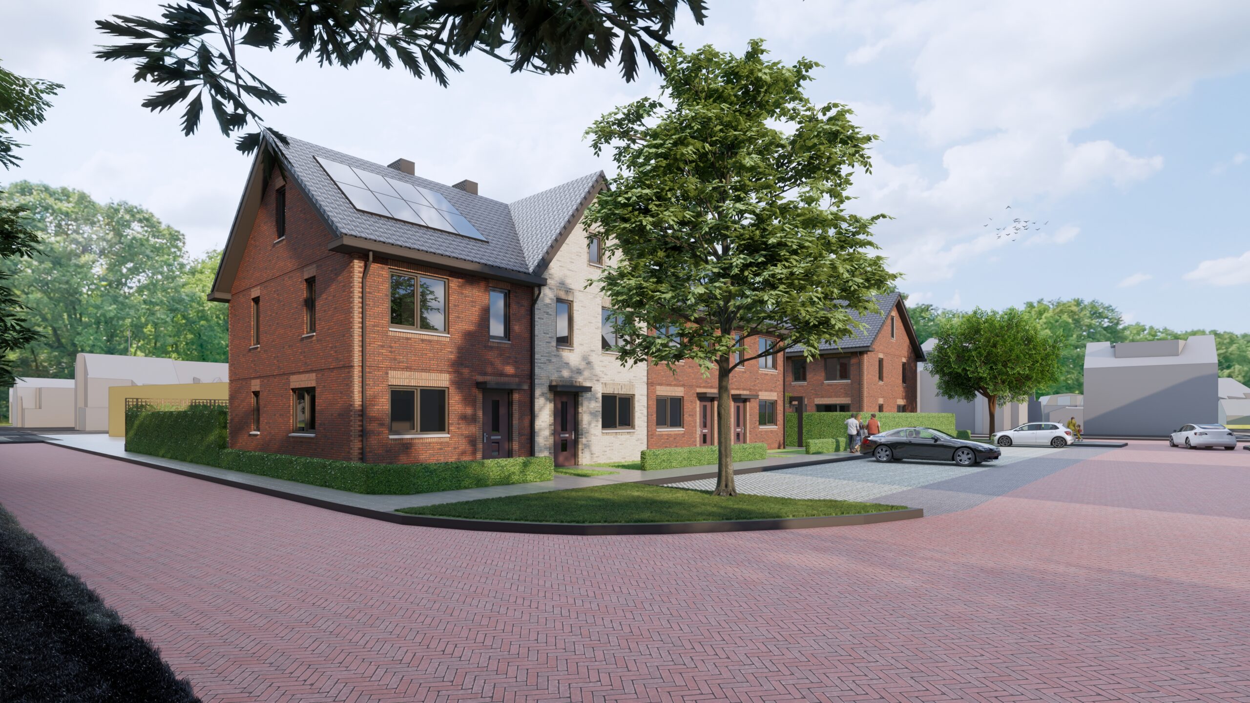 Aan de Lage Bothofstraat in Enschede gaat House2Start 8 ruime eengezinswoningen realiseren, naast de nieuwbouw van kindercentrum KOSMO de Hofferie. De woningen worden in 2 blokjes van 4 gebouwd.