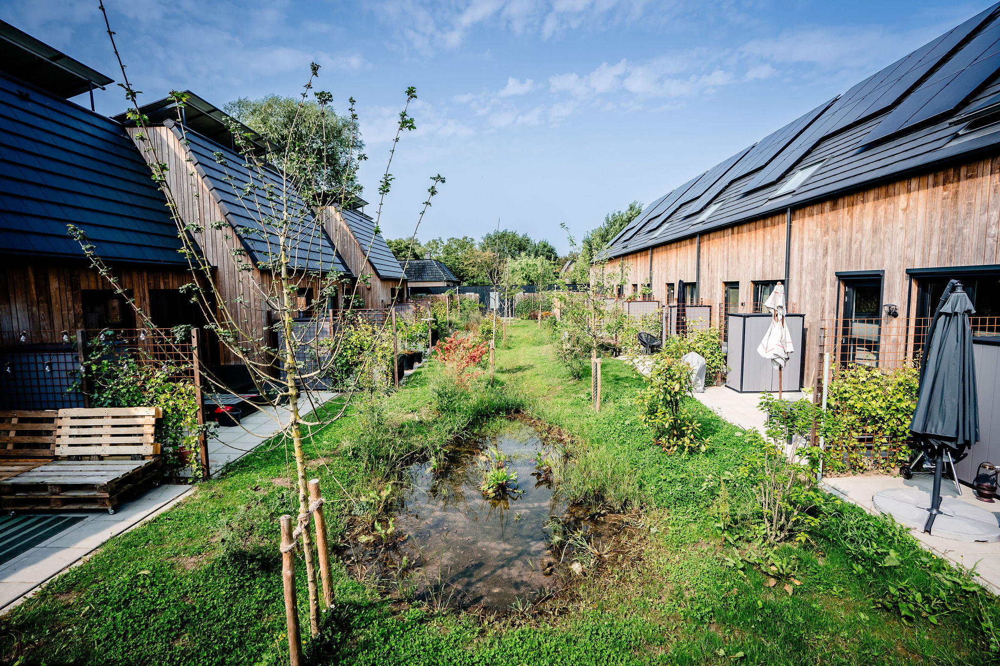 Het plan omvat 7 basis en 7 PLUS woningen met individuele bergingen en privé terrassen gelegen aan een collectieve tuin. De collectieve tuin is onderdeel van de opgerichte Vereniging van Eigenaren, die gezamenlijk het onderhoud regelt.